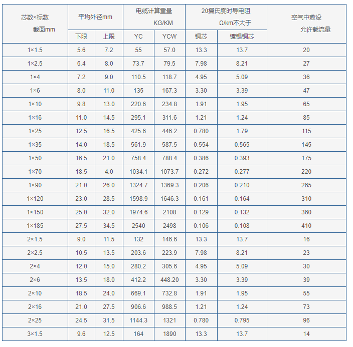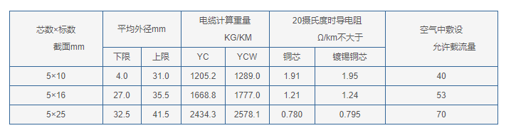 YC、YCW型電纜絕緣線芯間應經受交流50HZ 2500V電壓試驗5min.